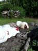 det er så hyggeligt at have sådan nogle hvide fjer totter løbende rundt i haven.